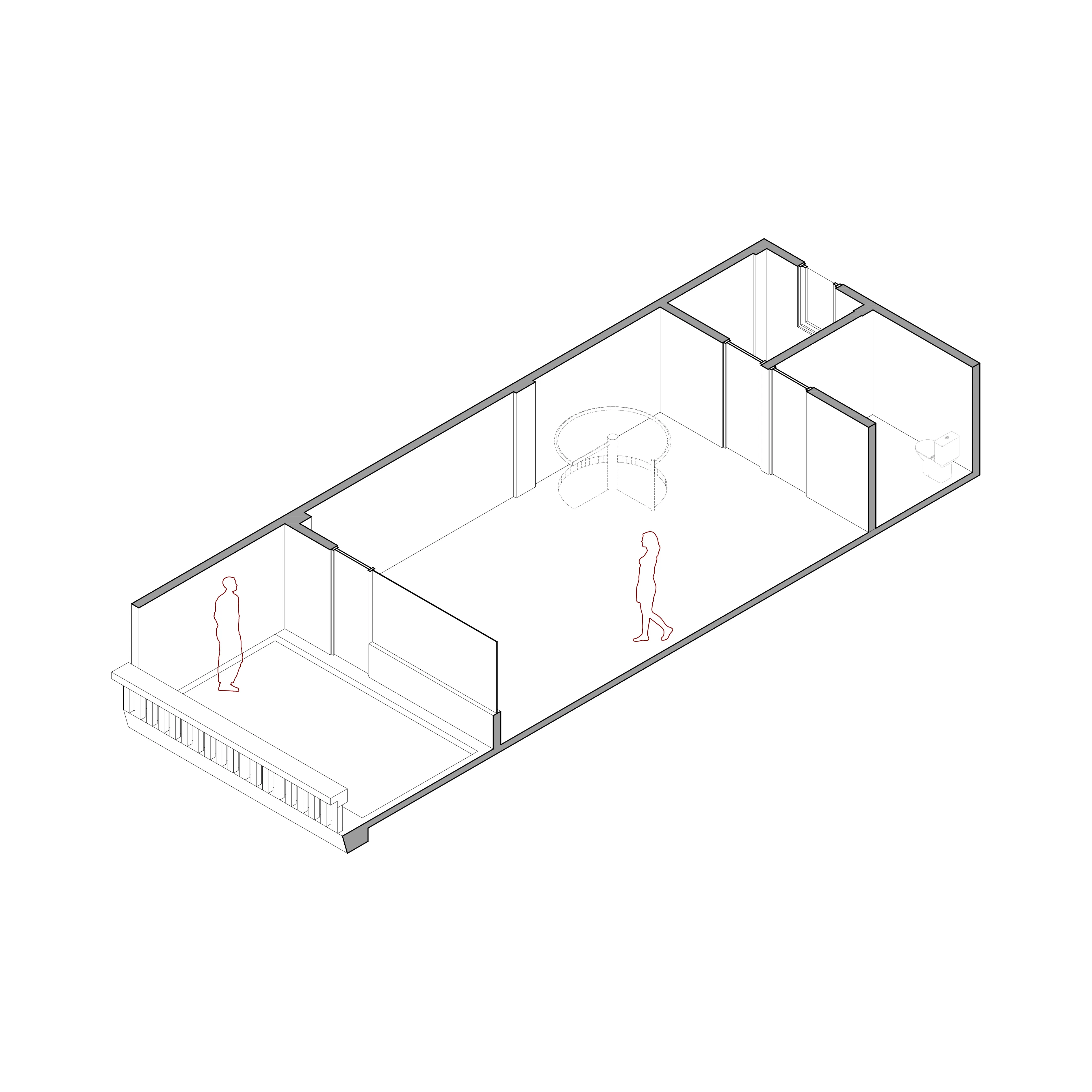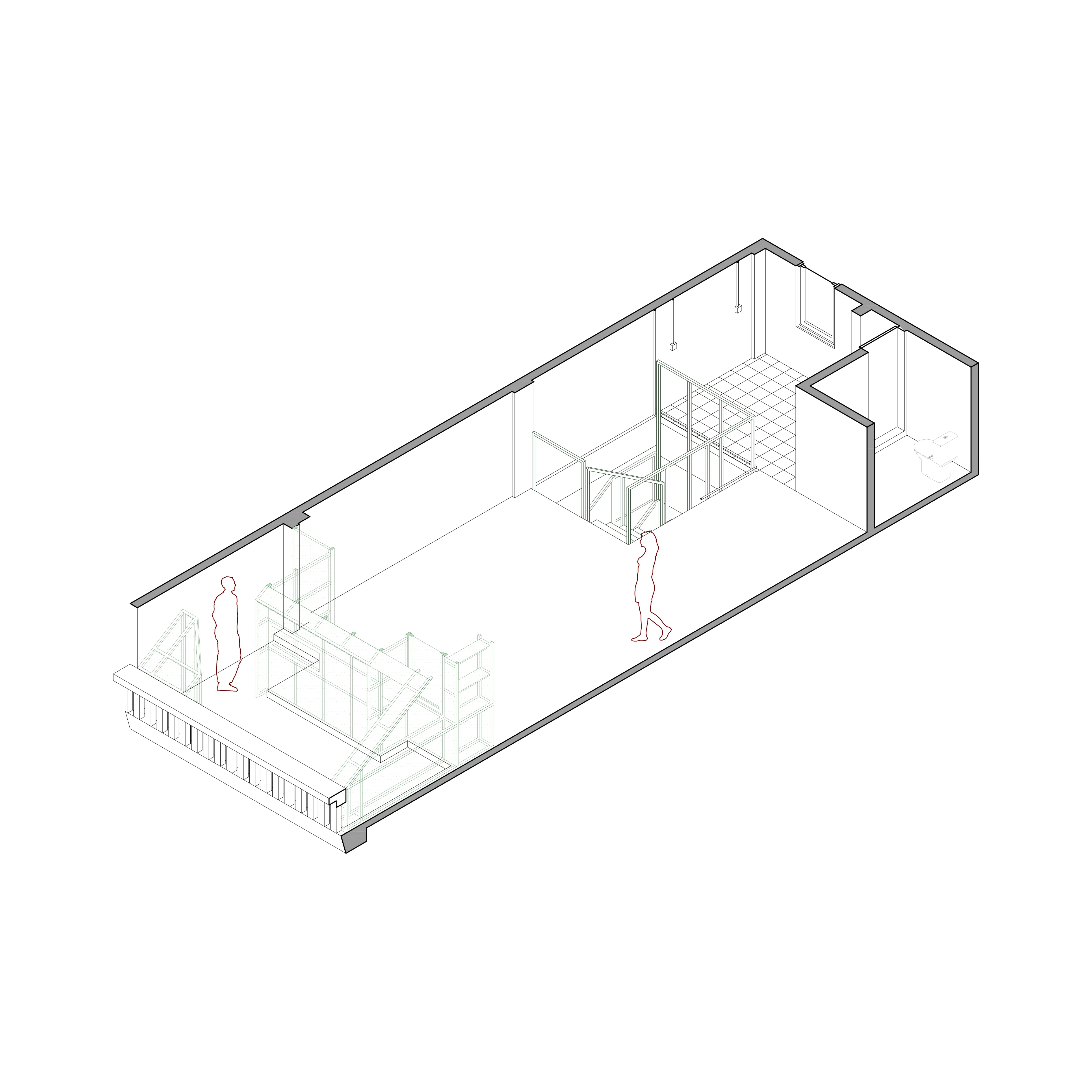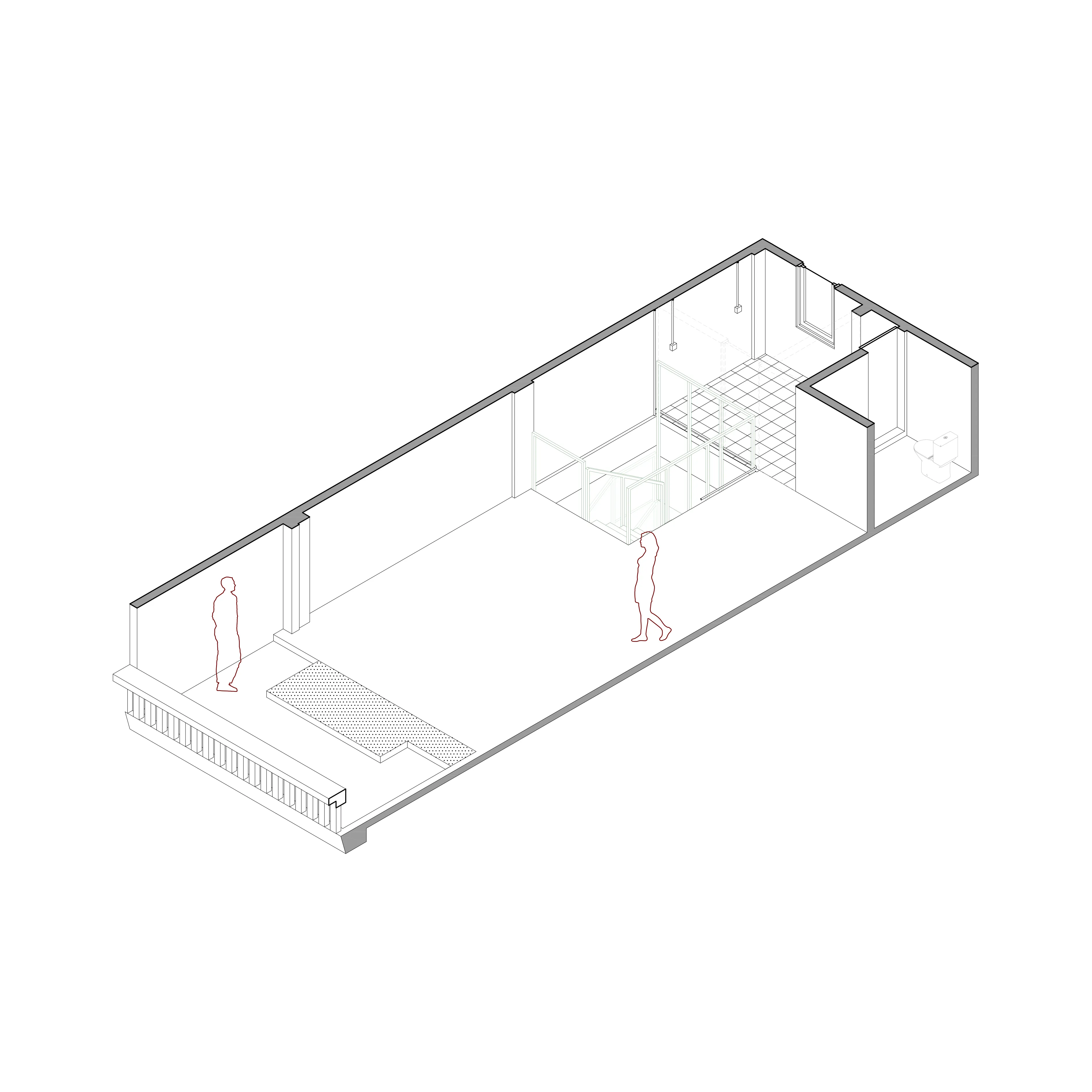 Our inside jokes of the look of this box is it looks like a bunker, this is because we have to consider the room sound cancelling performance which only allow limited opening resulting in solid grey box in its appearance, which become kind of antithesis of the light façade.